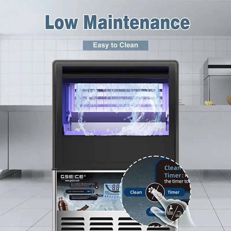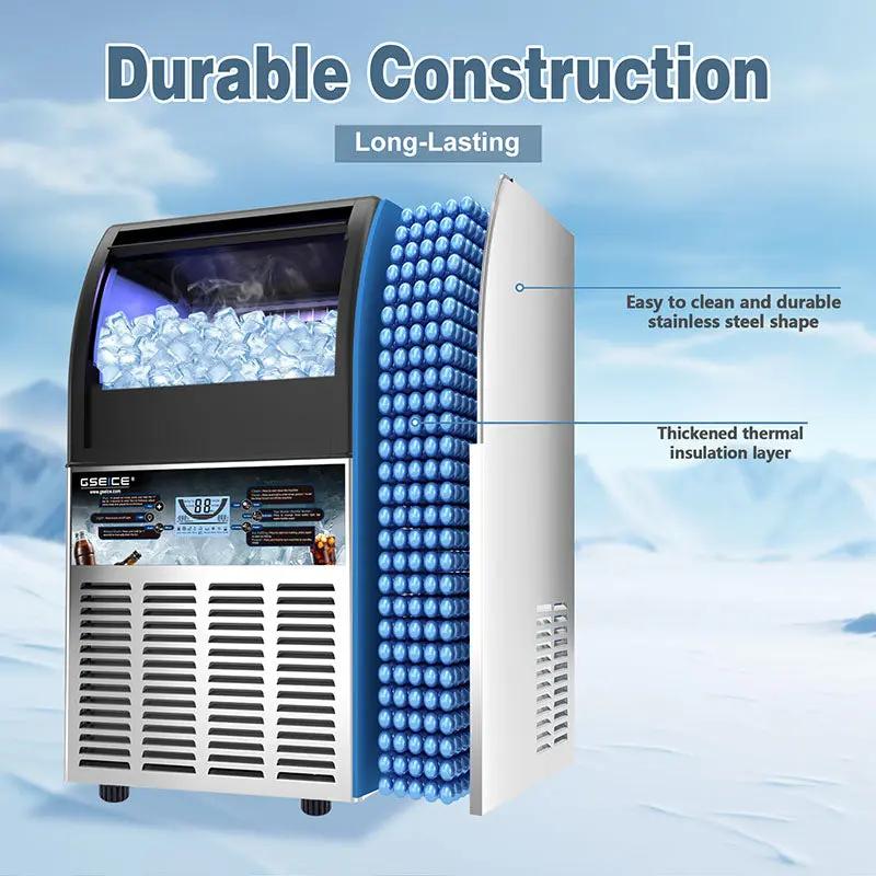 - ❄【Geringer Kohlenstoffausstoß, Umweltschutz, Energieeinsparung und geringer Verbrauch】 Das Problem der globalen Erwärmung kann nicht ignoriert werden. GSEICE setzt sich für den Umweltschutz ein. Diese kommerzielle Eismaschine verwendet das effiziente und umweltfreundliche Kältemittel R290a und erzeugt während des Betriebs keine Freon-Emissionen. Mit einem leistungsstärkeren Kompressor der weltberühmten Marke kann diese Eismaschine den Eisherstellungsprozess effektiv abschließen, ohne zu viel Lärm zu erzeugen.